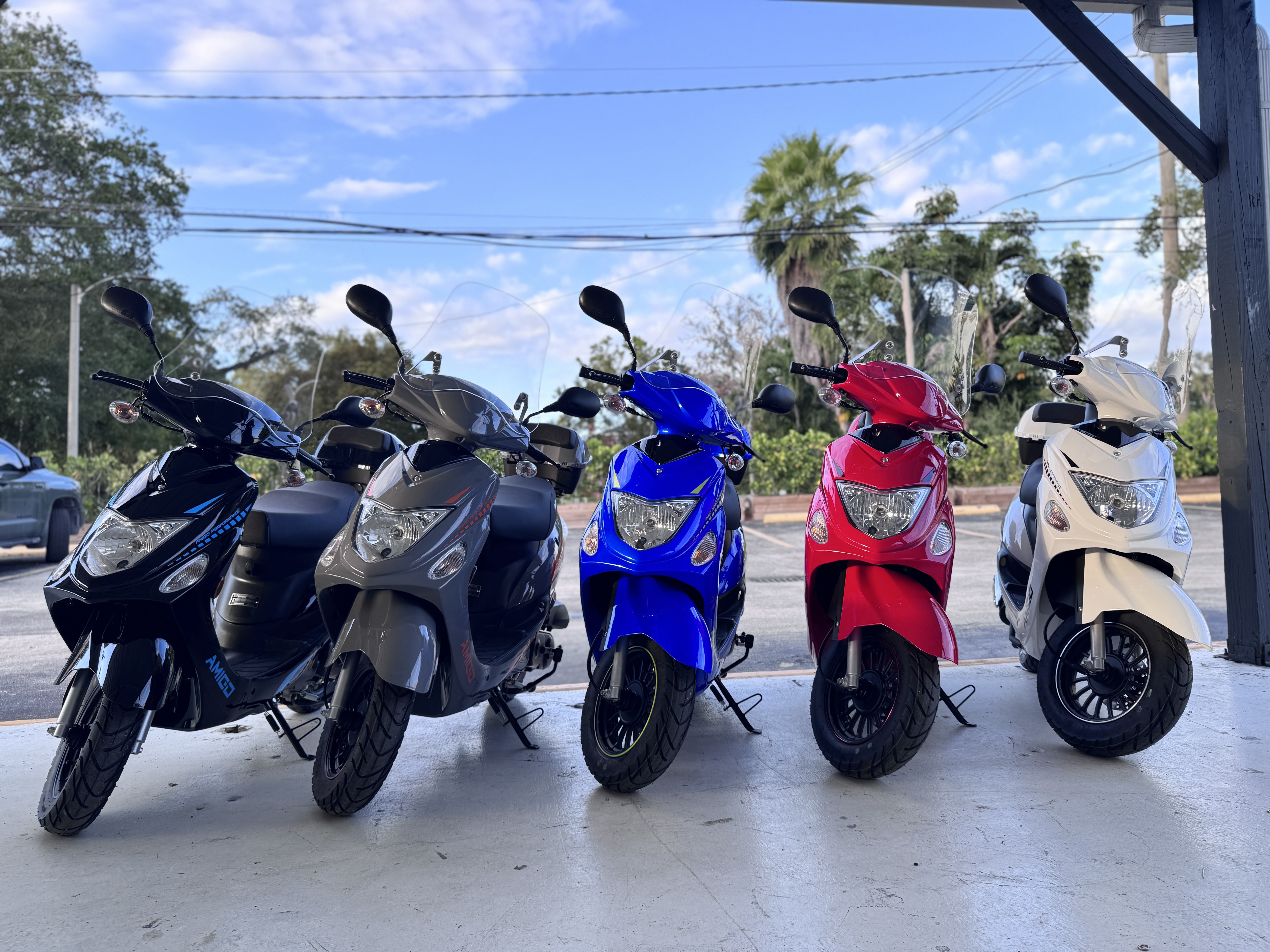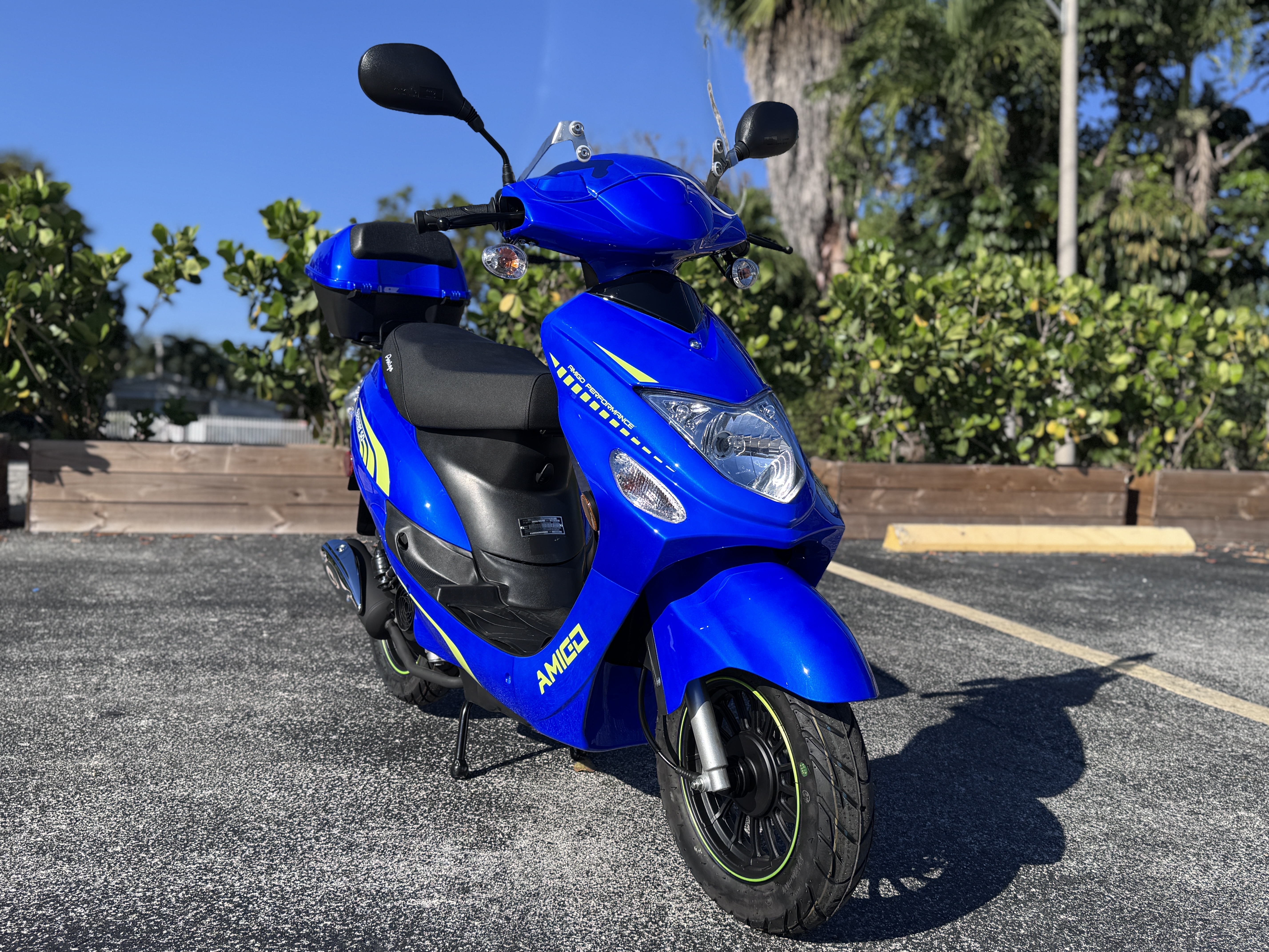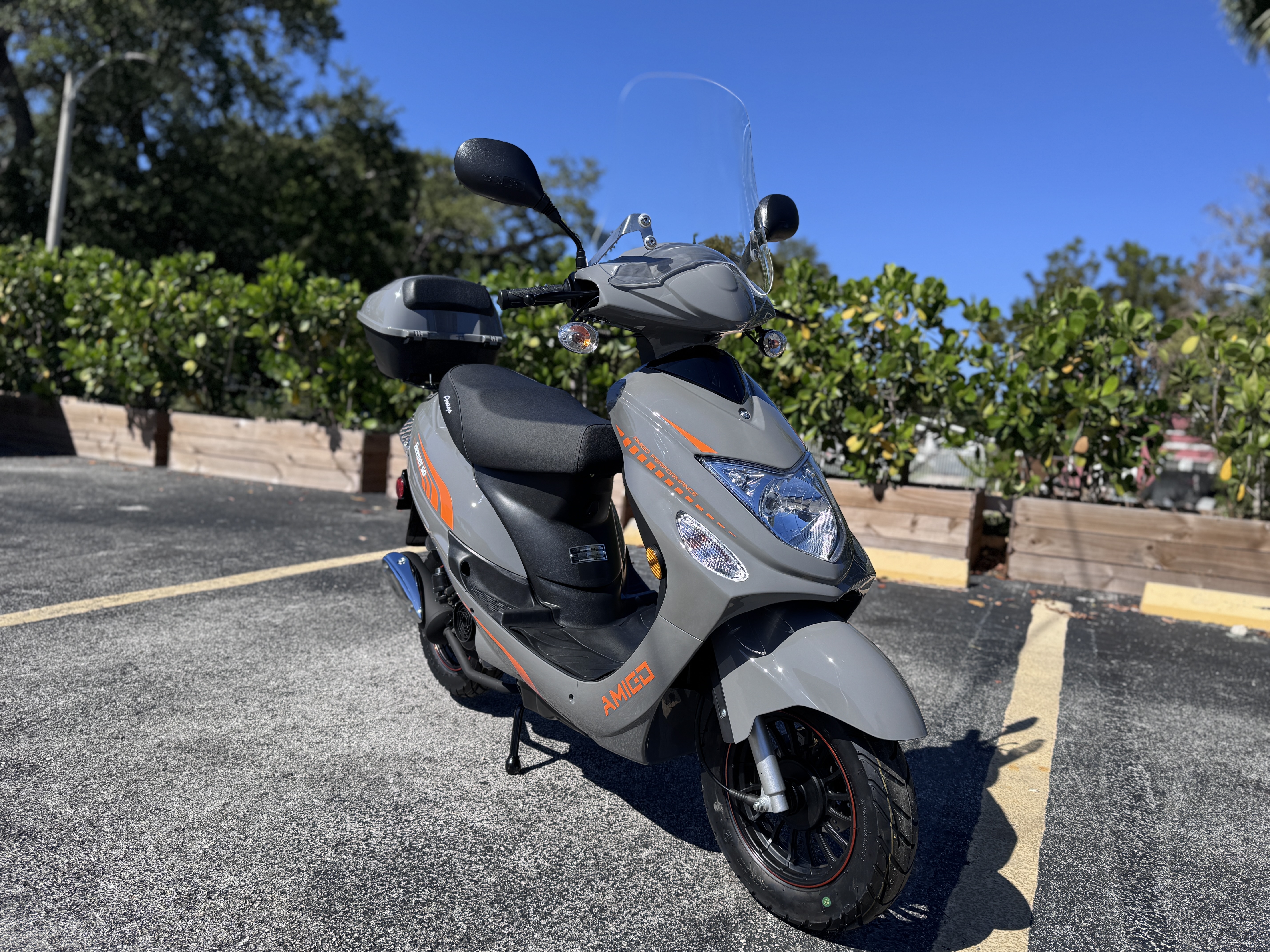 The Amigo Beemer-50 is a stylish and efficient 50-class street-legal scooter designed for daily commuting, campus riding, and neighborhood travel. Powered by a 49.6cc air-cooled 4-stroke engine, it delivers smooth and reliable performance with a top speed of up to 35–40 mph, while maintaining excellent fuel efficiency of up to 100 MPG.